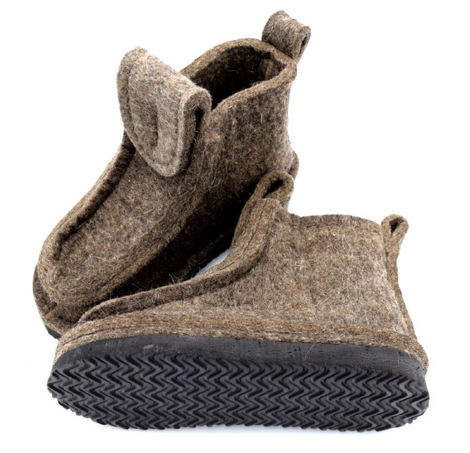 Валенки короткие из 100% овечьей шерсти, которая позволяет влаге испаряться, при этом сама не намокает, за счет этого валяная обувь «дышит». Овечья шерсть богата ланолином, ускоряет заживление ран и переломов, обладает противовоспалительными и антиаллергическими свойствами. Натуральные волокна шерсти – это хороший тепло проводник, который позволяет ногам не замерзать в самые трескучие морозы. Стопа в валенках находится в сводном положении и не устает даже при длительном хождении. Если обуть валенки на босую ногу, то создается массажный эффект стопы, который способствует улучшению циркуляции крови.