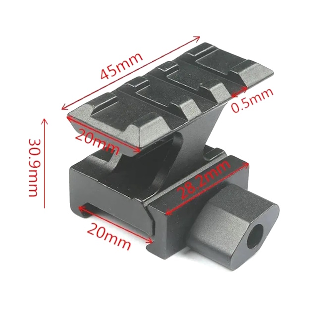 Адаптер-переходник предназначен для перехода с Weaver на Weaver на три слота. Высота составляет 24 мм. Адаптер изготовлен из алюминиевого сплава.