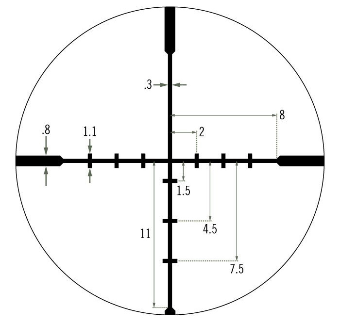 Оборудуется прицельной сеткой V-Plex с подсветкой или сеткой BDC без подсветки.