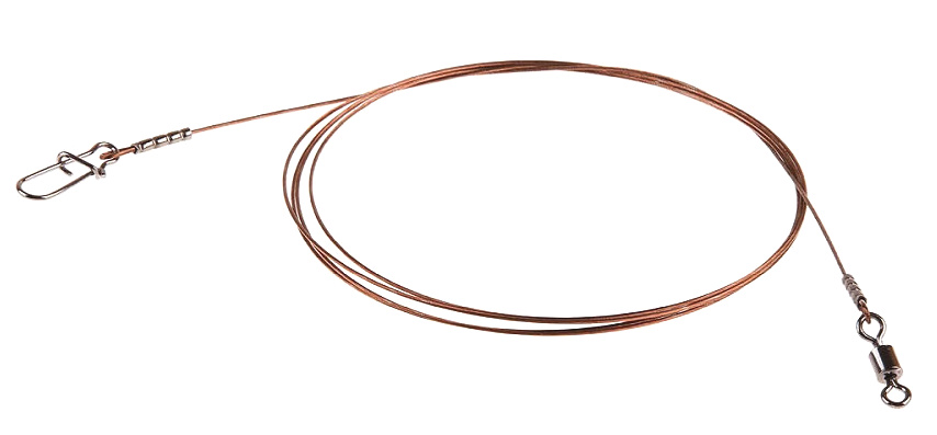Сплетен из 19 стальных нержавеющих проволок, имеющих маскировочное покрытие CAMO. Мягкий и надежный поводок позволяющий приманке свободно двигаться в воде.