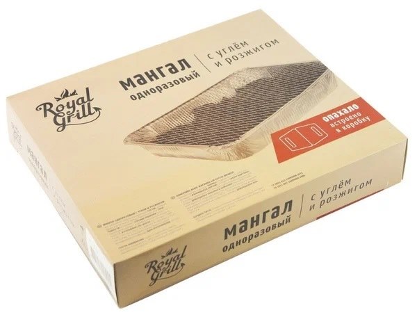 Одноразовый мангал с углем и розжигом ROYALGRILL служит для приготовления овощей и мяса на открытом воздухе. Простая конструкция удобна в использовании и включает в себя все необходимое.