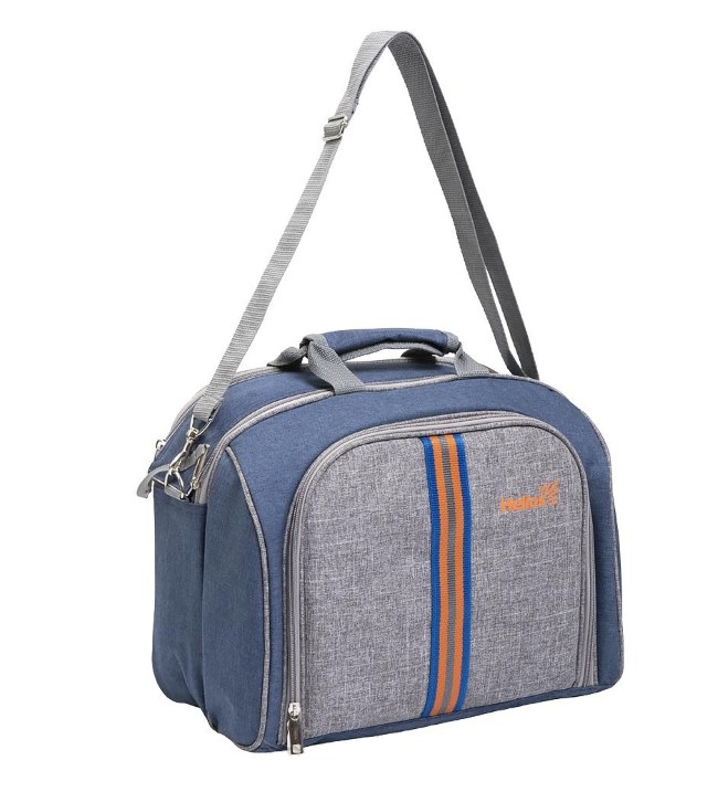 Набор для пикника на 4 персоны торговой марки Helios включает все самое необходимое. Набор также прекрасно подойдет в качестве подарка. Сумку отличает стильный и эргономичный дизайн: удобная ручка, наплечный ремень, термоизолированное отделение под продукты, которое удобно закрывается на две молнии. На передней части сумки расположено отделение с предметами набора. Сверху все предметы закреплены на резинки-фиксаторы, снизу помещаются в сетчатые кармашки. Предметы набора выполнены из пищевой стали, матового и белого пластика.