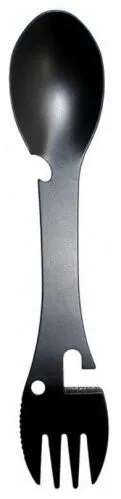 Универсальный прибор, который включает в себя: ложку, вилку, нож, открывашку для консервов и открывашку для бутолок. Легко моется, занимает минимум места в рюкзаке.